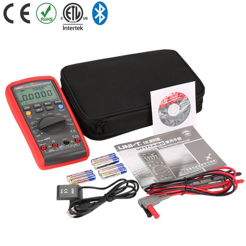 UNI-T UT171 multimeter er et industri multimeter for profesjonelle. Det har muligheten for å sende firkantpulser, kjekt for feilsøking av kontroll signaler. Multimeteret kan også måle LoZ (ACV) for å finne i liggende «ghost» spenninger i store kondensatorer. Med et OLED display er dette multimeteret (UT171C) optimalt i bruk helt ned til – 30°C i romtemperatur.